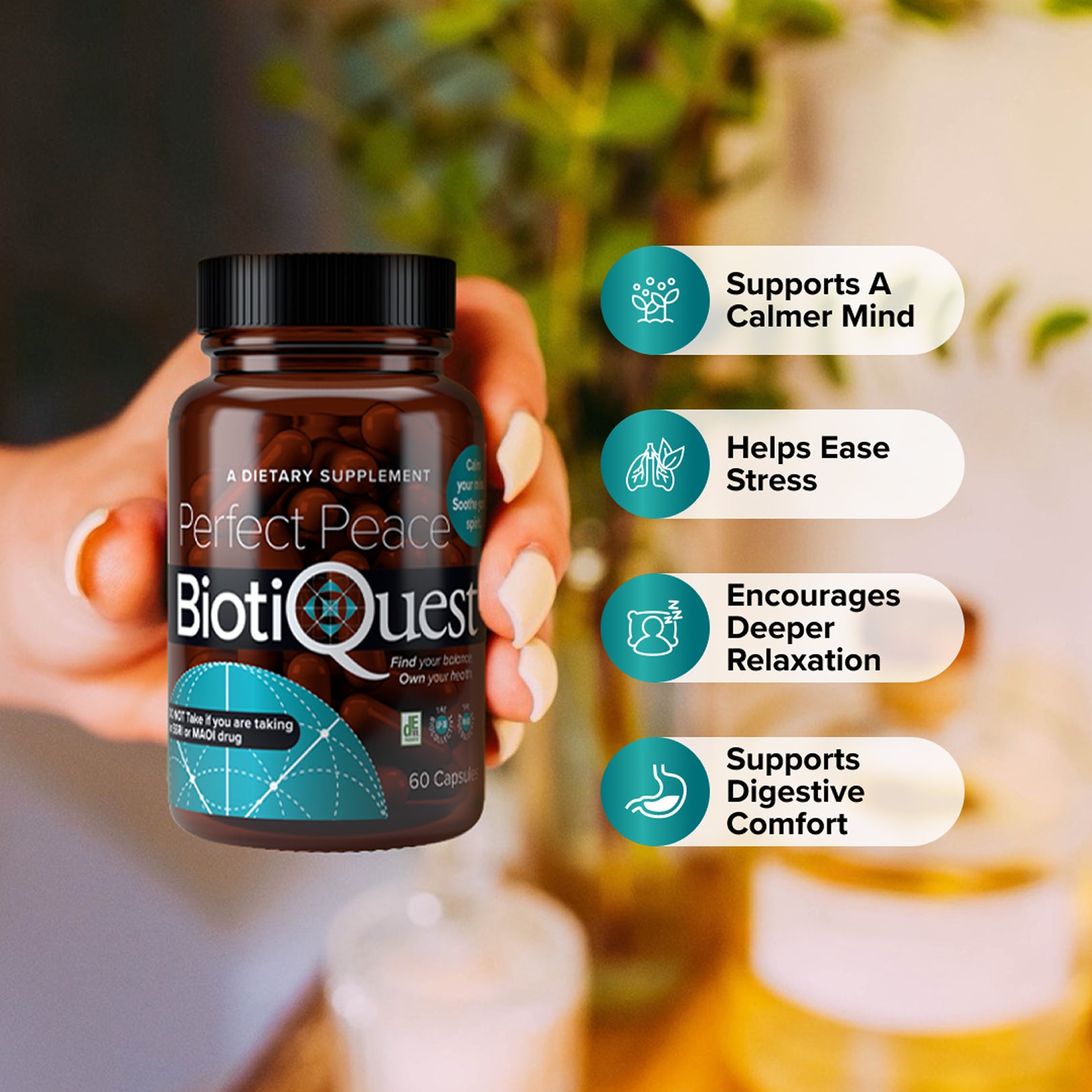 Feel calmer fast. Many people notice a difference on the very first day. Perfect Peace™ begins supporting the gut-brain axis right away — helping you feel more grounded, relaxed, and centered even amid holiday stress.