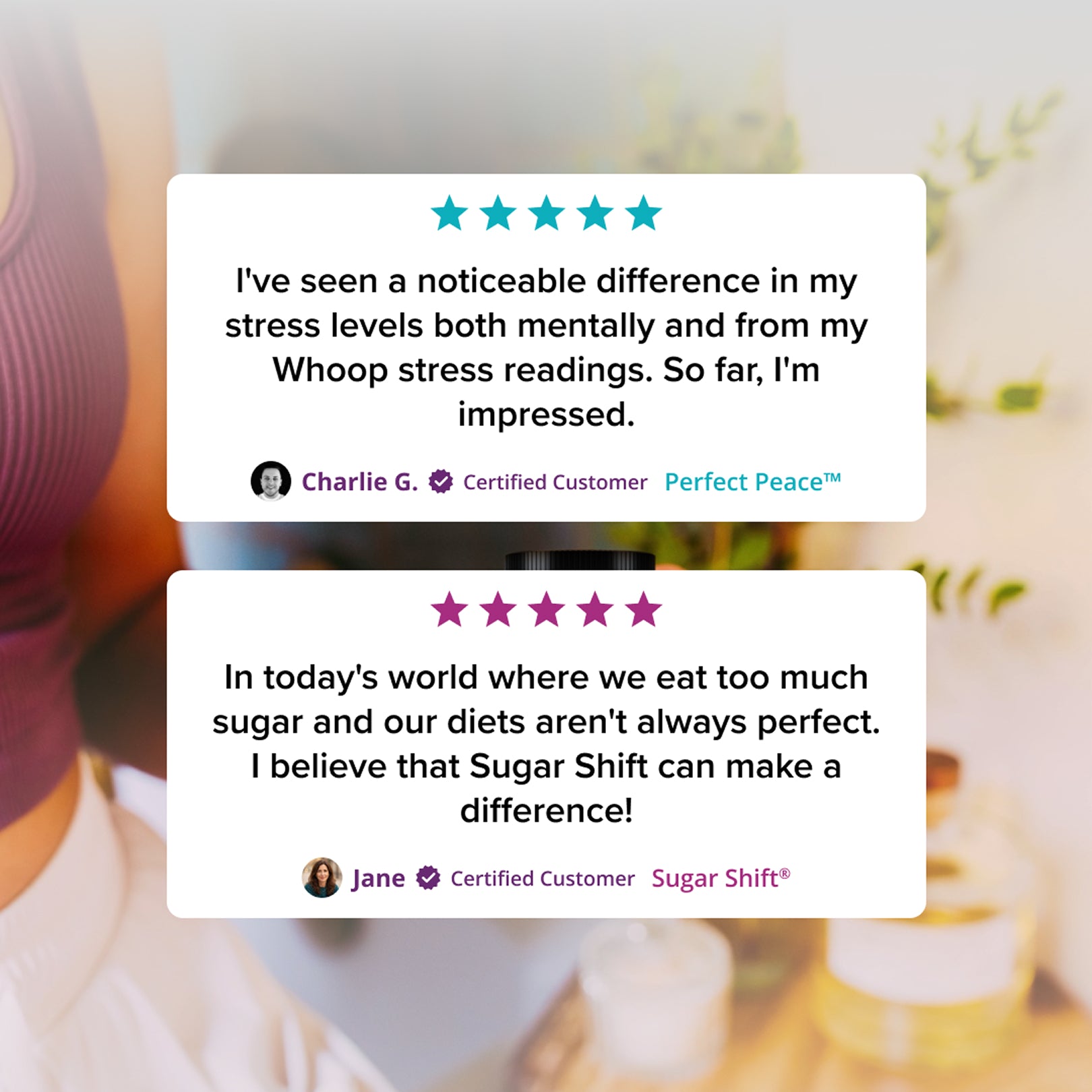 The holidays may end, but stress and sugar don’t. If this combo worked well for you, keep it in your routine: Sugar Shift® for steady metabolic support, and Perfect Peace™ whenever you need an extra layer of calm.