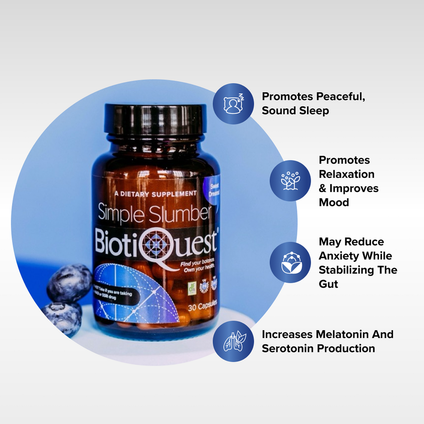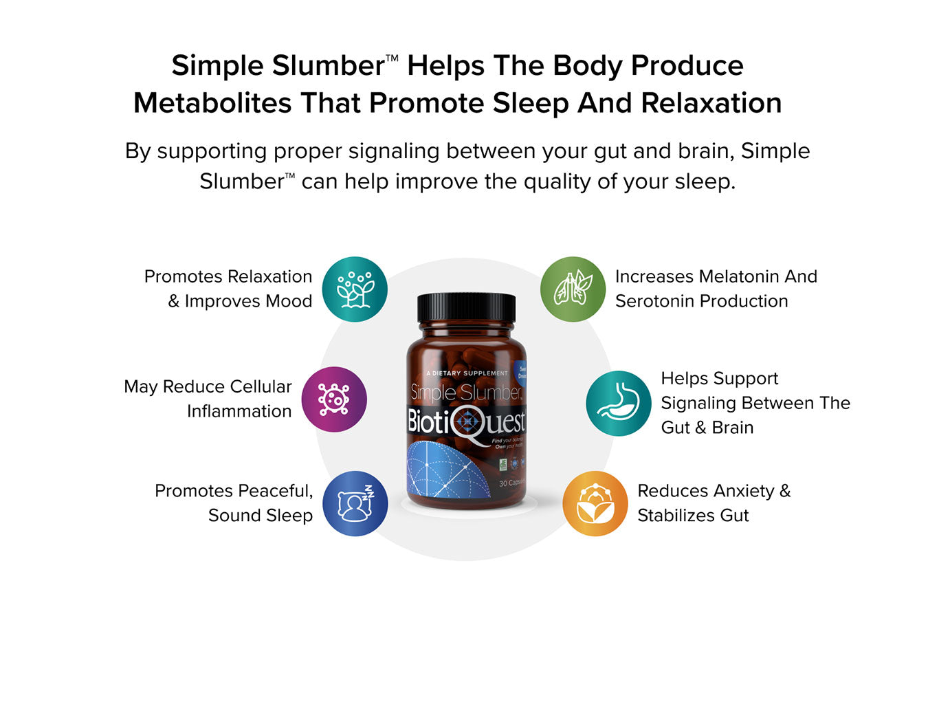 By supporting proper signaling between your gut and brain, Simple Slumber™ can help improve the quality of your sleep.